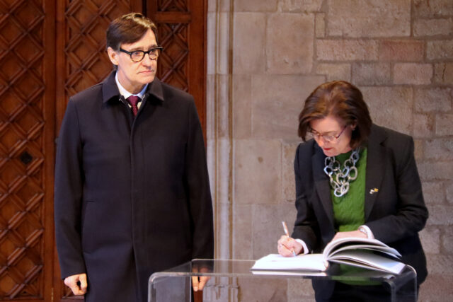 Prèviament a la signatura, el president Illa i la primera ministra Morgan han mantingut una reunió al Palau de la Generalitat, on també hi ha assistit el conseller d’Unió Europea i Acció Exterior, Jaume Duch.