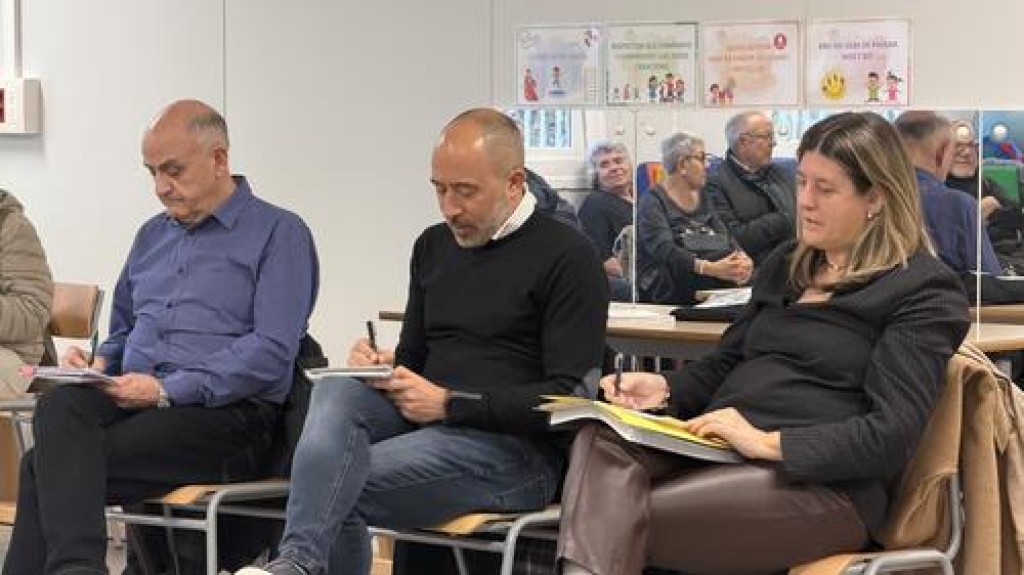Imatge: L’alcalde Marc Aloy i altres regidors prenent notes durant una trobada anterior.