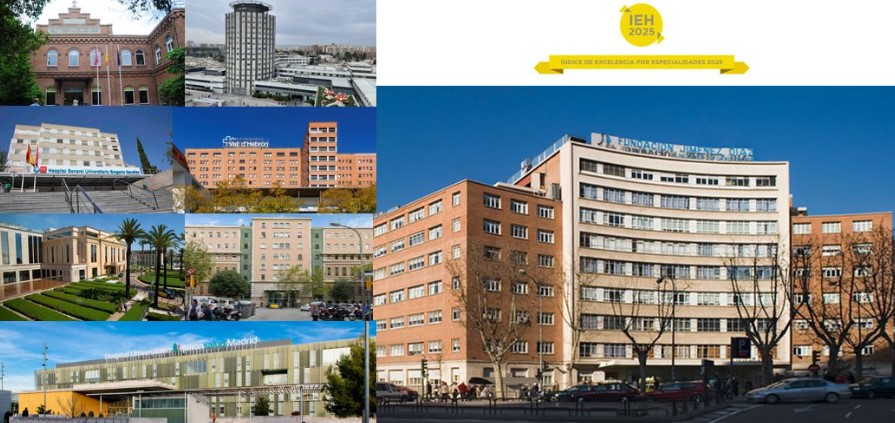 L’Hospital Universitari Fundació Jiménez Díaz es posiciona com un dels grans protagonistes de l’IEH 2025, liderant especialitats com Ginecologia, Cirurgia General, Pneumologia, Neurologia, Oncologia Mèdica i Urgències. El segueixen hospitals històrics del sistema sanitari espanyol com l’Hospital Universitari La Paz, al capdavant en Traumatologia i Cirurgia Ortopèdica, així com en Reumatologia; l’Hospital Universitari Gregorio Marañón en Psiquiatria; o l’Hospital Universitari Vall d’Hebron, que novament lidera Aparell Digestiu.